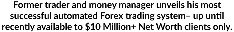 You don’t need to make any trades either. You can have it all on complete auto-pilot. Just select your risk and watch it grow. I’m going to show you how to use the exact system I give to the $10 million and up net worth clients. Once it’s setup you do nothing, it’s all on auto-pilot. No manager is touching your funds or trying to cheat you, just a computer software trading for you, giving you a competitiveedge over other traders.