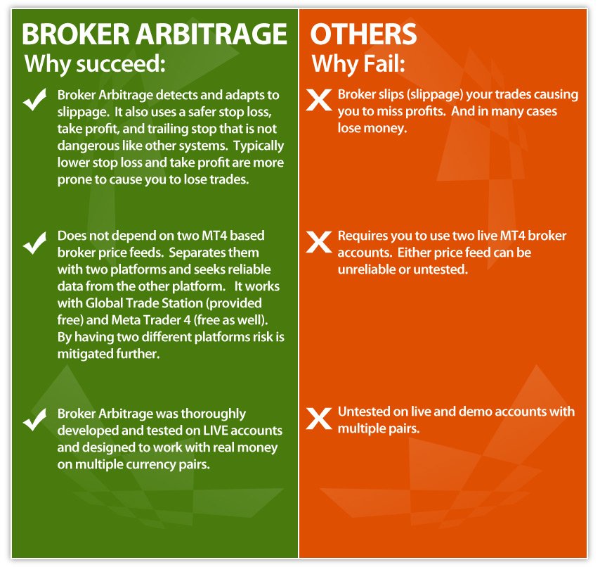 The truth is most arbitrage systems fail. I spent a lot of time researching and working on Broker Arbitrage to try to perfect and address those failures – and prevent them.