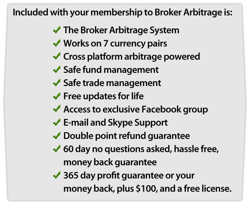 I’ve made this offer as risk free as possible to show you how confident I am that you will succeed with Broker Arbitrage.