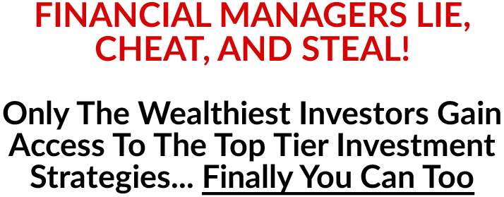 You don’t need to make any trades either. You can have it all on complete auto-pilot. Just select your risk and watch it grow. I’m going to show you how to use the exact system I give to the $10 million and up net worth clients. Once it’s setup you do nothing, it’s all on auto-pilot. No manager is touching your funds or trying to cheat you, just a computer software trading for you, giving you a competitiveedge over other traders.